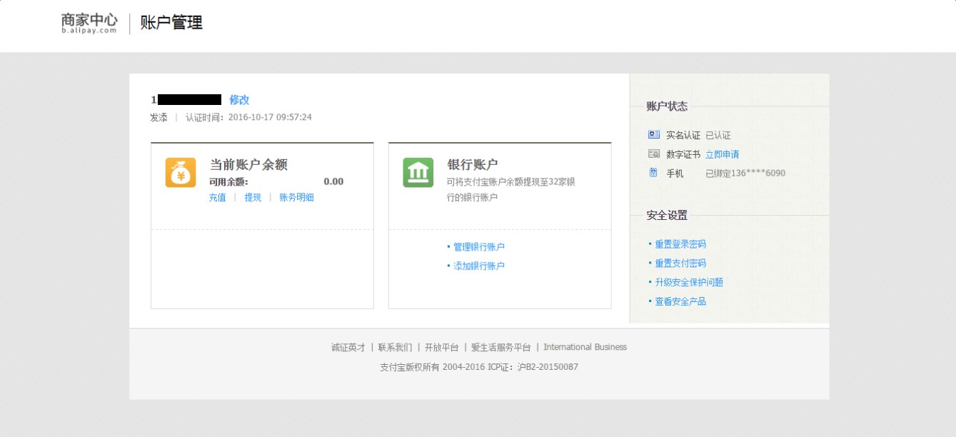 新名称:蚂蚁金服|商家中心,地址:b.alipay.com